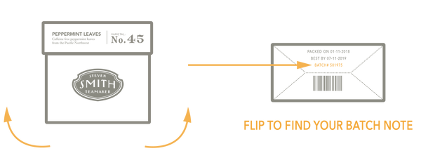 Sorry, we don't have your product in our system yet! Reach out to our team at customersuccess@smithtea.pro with your batch number to learn the provenance of the ingredients of your cup of Smith Tea.